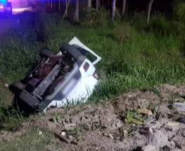 Una camioneta intentó pasar a un camión y ambos terminaron en la banquina