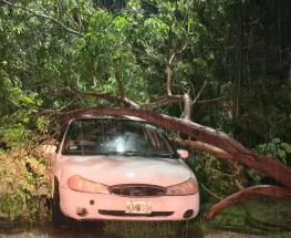 Árboles y postes caídos, voladuras de techos y cortes de luz se registraron durante la madrugada del sábado. La Policía y personal municipal trabajan para despejar las calles y asistir a los vecinos afectados.