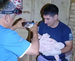 Trasladaron a médicos en patrullero y evacuaron a la madre y al bebé recién nacido.