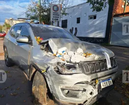 Accidente. Un automovilista esquivó una moto y chocó contra un poste de luz