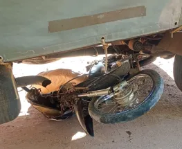 El accidente ocurrió esta tarde en la ciudad termal. La moto quedó debajo del camión y sus ocupantes fueron trasladados al hospital local.