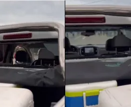 Manifestantes rompen el auto de un abogado que intentó pasar por el costado de un piquete