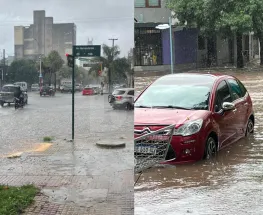 Imágenes compartidas por usuarios de Diario TAG dan cuenta de la situación: autos y vehículos estacionados con el agua tapando sus ruedas y otros tratando de circular en medio del temporal.