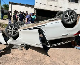 Hay tres detenidos. De película: robaron un auto y mientras escapaban, chocaron y volcaron en la calle
