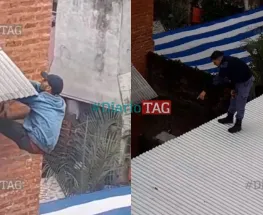Video. Un ladrón ingresó a robar a un edificio y quedó atrapado en los techos hasta la llegada de la Policía