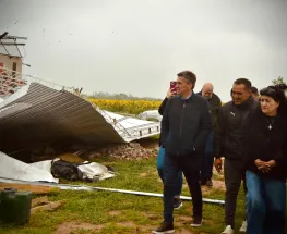 El gobernador recorrió las zonas dañadas junto al intendente Dalmasso y funcionarios provinciales, tras el fuerte temporal que destruyó viviendas y dejó heridos leves.