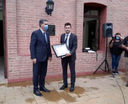 El intendente hizo entrega de una Resolución al director del establecimiento educativo, profesor Gustavo Fontán.