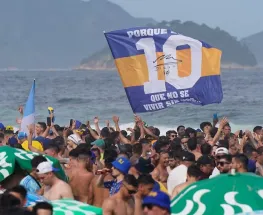 A un día de la posible séptima Copa Libertadores para los nacionales, los hinchas del club azul y oro realizaron un banderazo en una de las playas de Río de Janeiro.