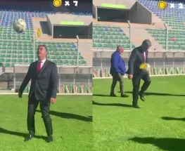 Video. Video: Capitanich visitó el Estadio Único y se animó a hacer jueguitos