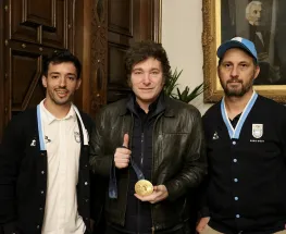 Javier Milei recibió a "Maligno" Torres y mostraron la medalla de oro en el balcón de la Casa Rosada