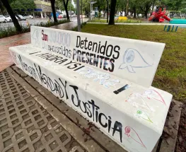 Pintaron placas y bancos sobre los 30 mil desaparecidos y la consigna "Nunca Más" referentes a la última dictadura militar argentina.