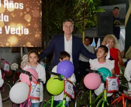 En la celebración el mandatario provincial entregó equipamientos, mobiliarios y 16 bicicletas "recuperadas de la corrupción", destinadas a alumnos que viven más alejados de la Institución.