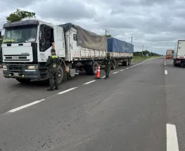 Los agentes de la fuerza detuvieron este viernes a dos camiones repletos de granos sin la documentación legal para el traslado.