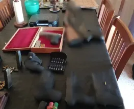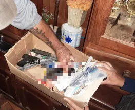 Al requisar el lugar, hallaron una pistola calibre 22mm., un revolver calibre 22mm, 47 cartuchos de distintos calibres, más de 100 gramos de cocaína, entre otros elementos.